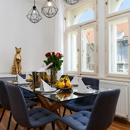 Die 148 m² großen Golden Cat Suite Prag in Prag befindet sich rund 2 Kilometer vom Prager Fernsehturm und circa 25 Gehminuten vom Einkaufszentrum Palladium entfernt. Neben allgemeinen Einrichtungen wie einer Wechselstube und einem Geldautomaten können Gäste auch WLAN nutzen.